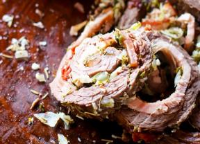 Abra a manta de carne em uma tábua ou superfície para distribuir o recheio.