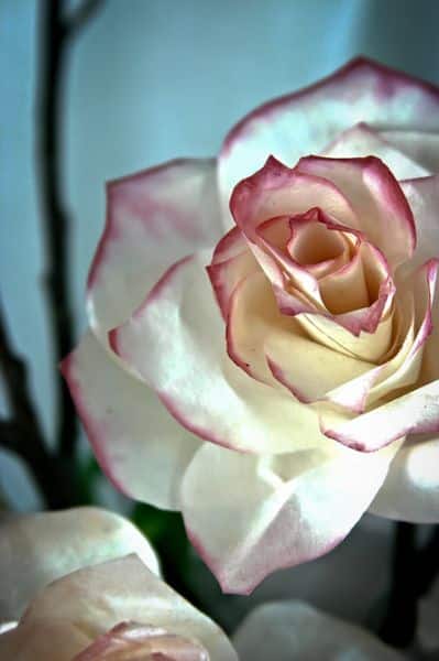 Agora, para finalizar a sua peça, se você quiser, pinte a sua rosa. Você pode mergulhar a flor inteiramente na tinta ou mergulhar apenas as bordas, para fazer uma rosa mesclada. Deixe secar. E está pronto!